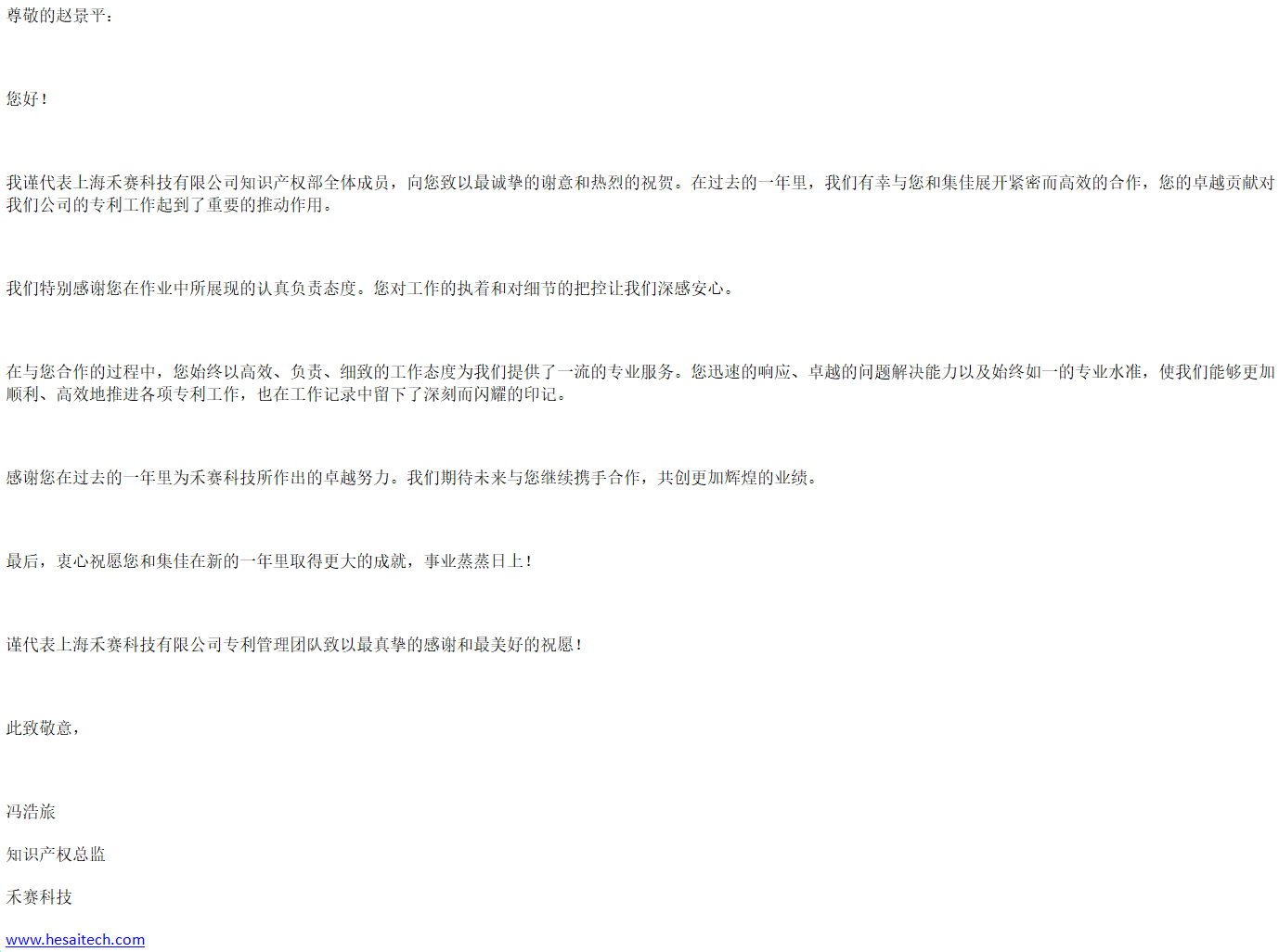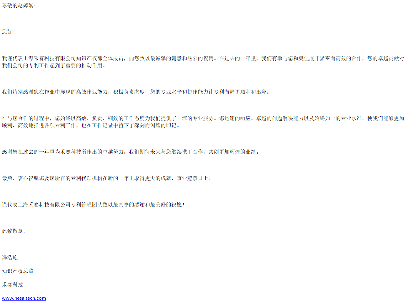 新年伊始,集佳喜获来自客户上海禾赛科技有限公司的感谢信,对开云上海分所提供的优质服务表示感谢。